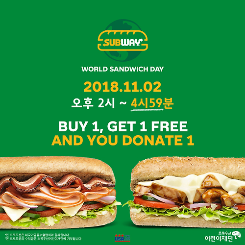 11월 2일 15cm 서브웨이 샌드위치 1+1 (0) | 2018.10.25 |